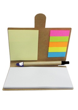 Bloco de anotações ecológico com post-its, marcadores de páginas e caneta.