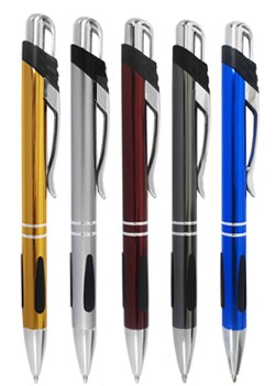 Caneta de metal, com detalhe emborrachado.